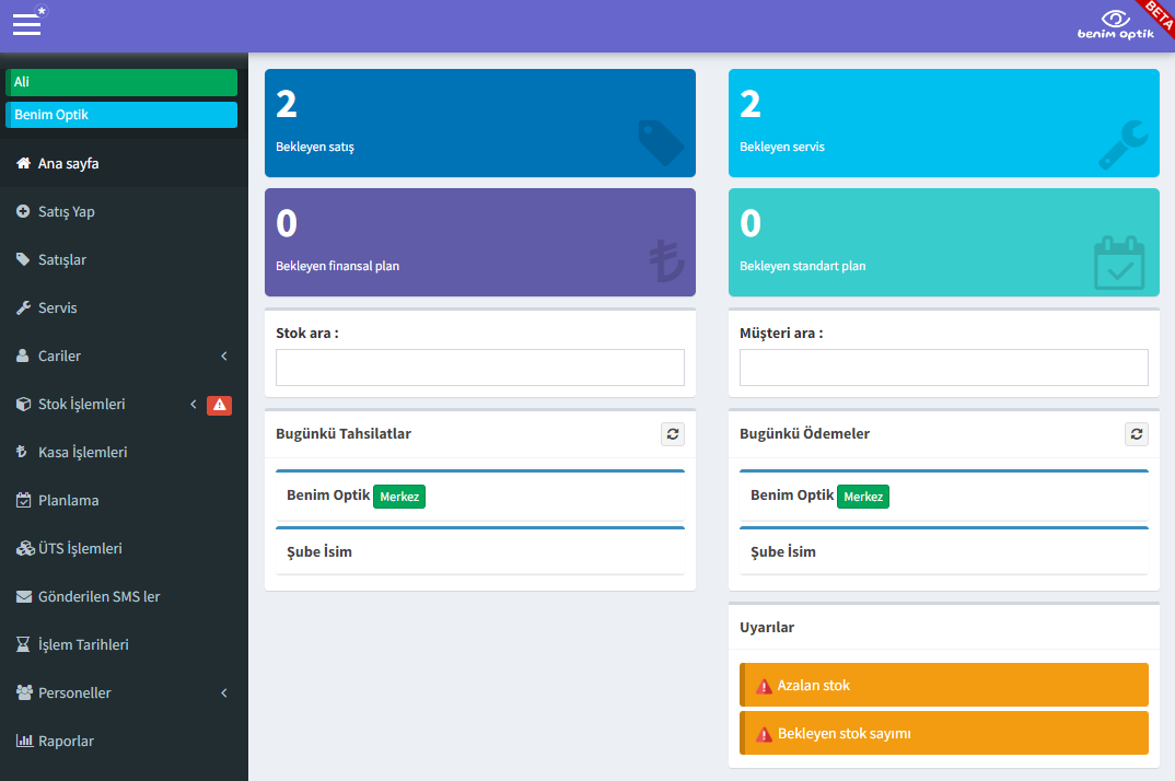 Satış yap, stok tut, takip et.
